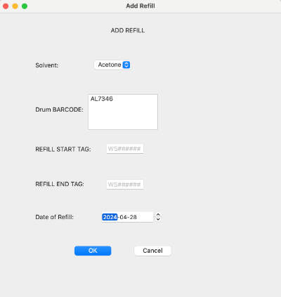 One of my duties at work is refilling solvent bottles in the Solvent Dispensing Facility. Bulk solvent is being transferred from 200 L drums into 4 L bottles. Sometimes impurities are discovered after dispensing and there needs to be a way to determine from which drum the bottle was refilled. Before I took over these duties, there was no way to track this.